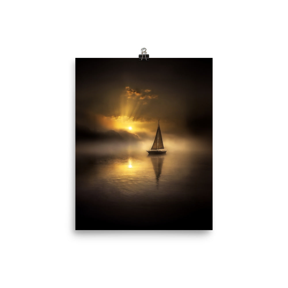 Sailboat on Foggy Morning Poster